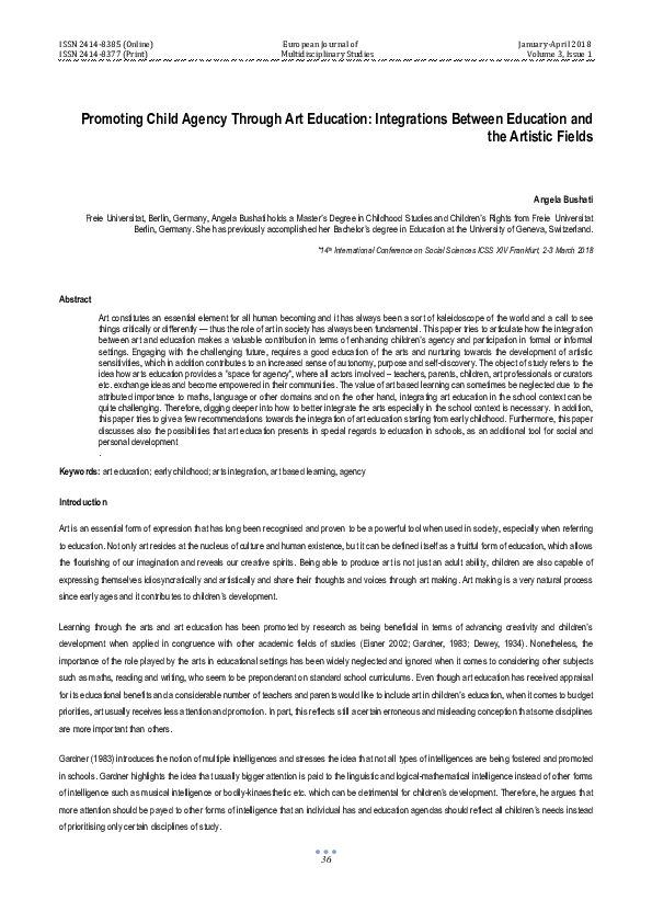 Pdf Promoting Child Agency Through Art Education Integrations Between Education And The Artistic Fields Angela Bushati Academia Edu